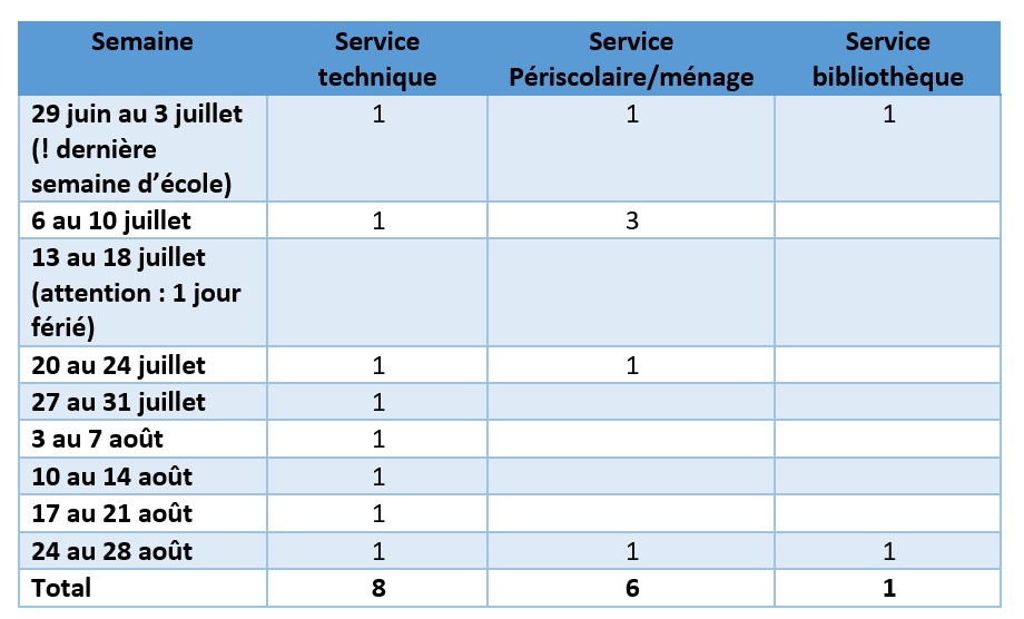 Cette année, les besoins sont les suivants :