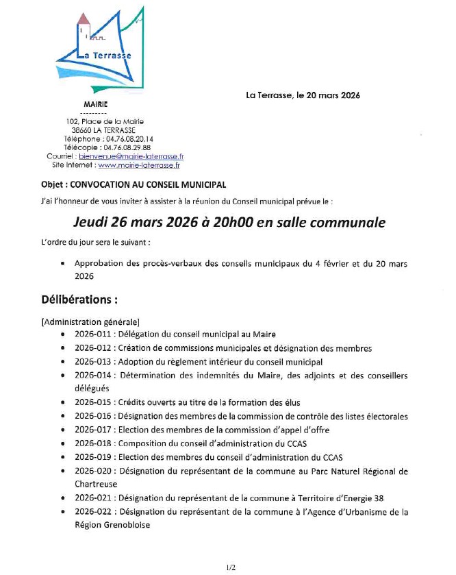 Conseil municipal : Jeudi 26 mars 2026